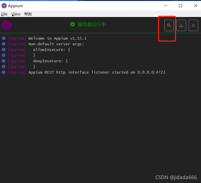 1.打开appium工具软件,主机和端口可以不改,点击启动服务器