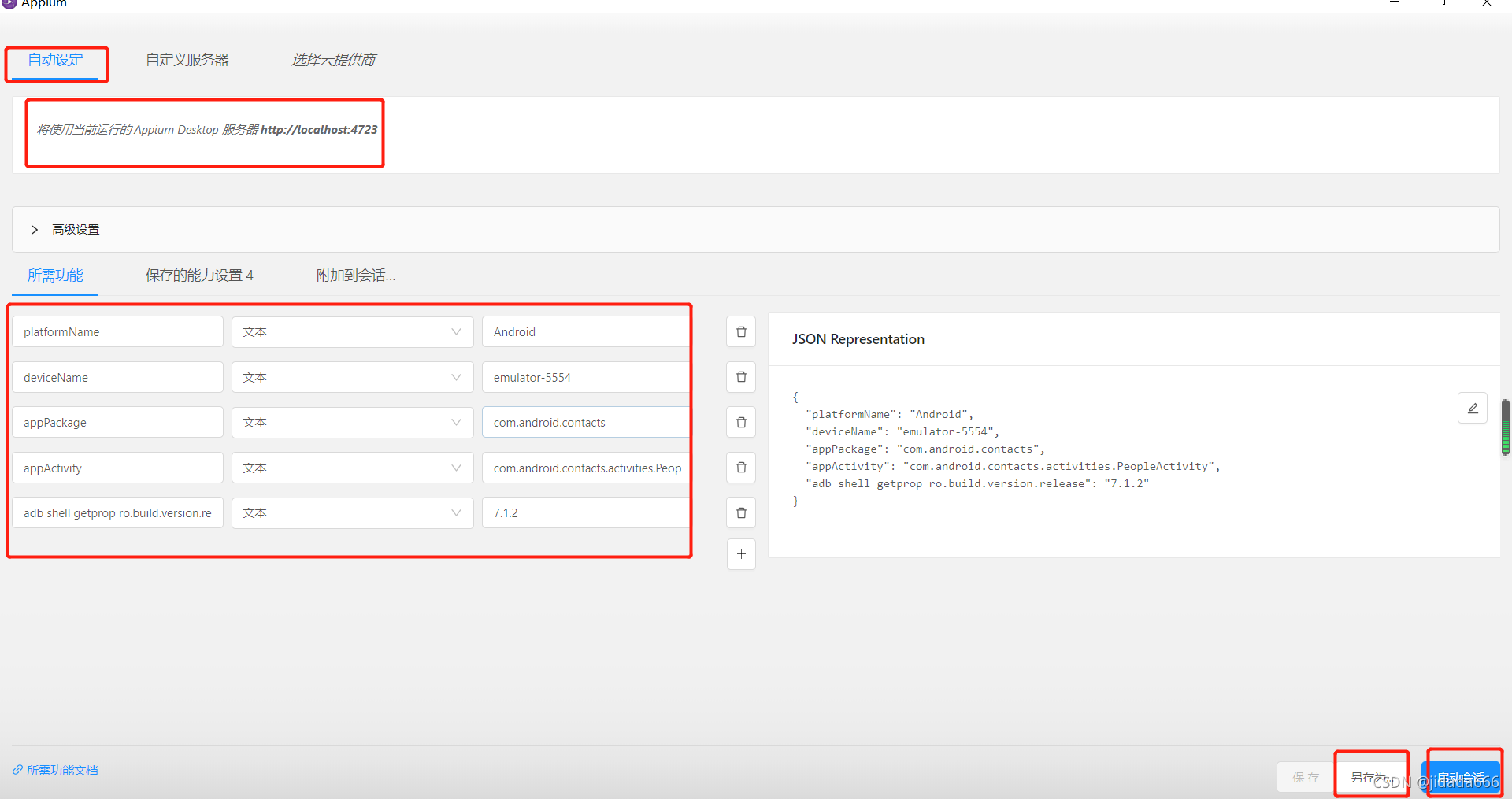 4.platformName选择你的手机类型,deviceName通过adb命令adb devices获取到数据,appPackage通过adb命令 adb shell dumpsys window | findstr mCurrentFocus获取到数据appActivity通过adb命令 adb shell dumpsys window | findstr mCurrentFocus获取到数据