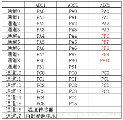 三、STM32F10x系列芯片ADC通道和引脚对应关系