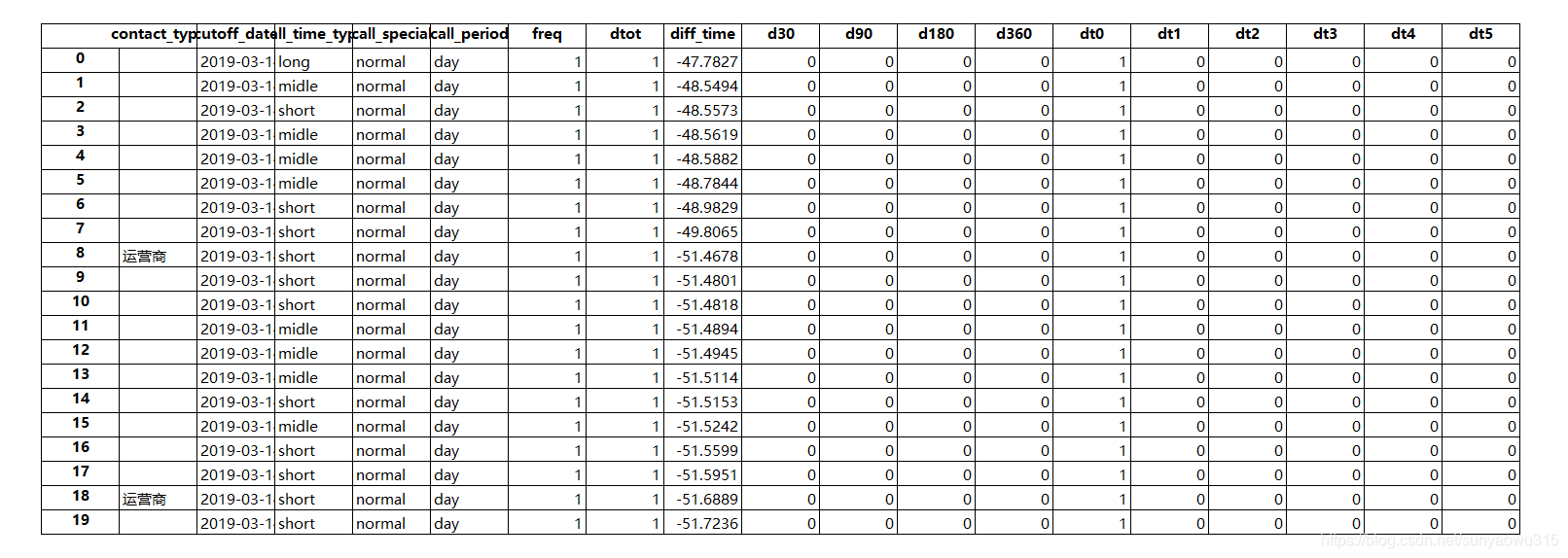 可以看到,新增了call_land、call_type、call_time、call_period等字段(主被叫、本外地、时长、日夜间、特殊,行为习惯等判别依据 )