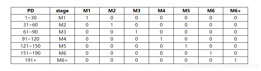 基于一个特征,使用特征值打平(扩展)的方式衍生多个标注类型的特征,也可以理解为离散化。对于分类变量,直接one-hot编码;对于数值型特征,离散化到几个固定的区间段,然后用one-hot编码。比如信贷场景逾期天数: