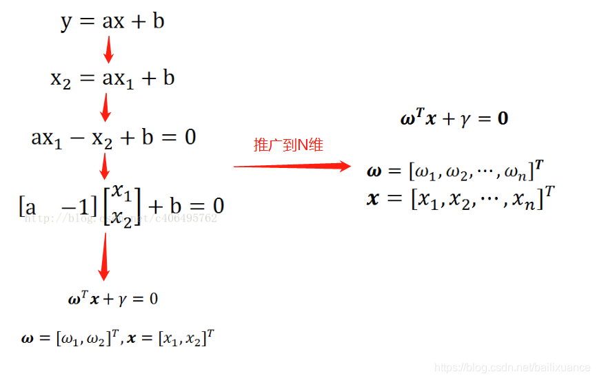 二维空间中,向量W与直线垂直,称w为直线的法向量,