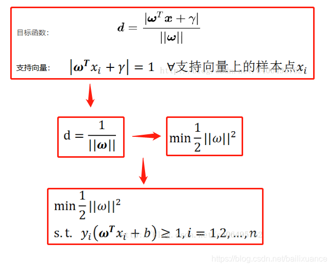 目标函数显然就是那个”分类间隔”,而优化对象则是决策面。