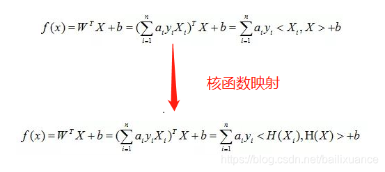 从这个公式可以看出,对于一个新点X,只需要计算它与训练数据点的内积即可。