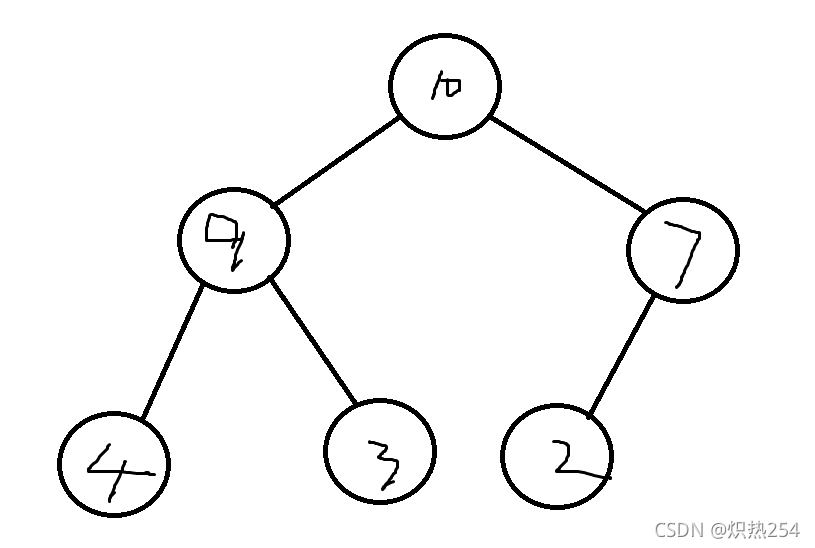 序号最大的一个内部节点下标为:(二叉树中编号最大的叶子节点-1)/2;上图中则有(5-1)2=2;我们就应从2号结点开始,依次对编号为2、1、0的内部节点及其根节点进行排序(此处需要一个循环)。