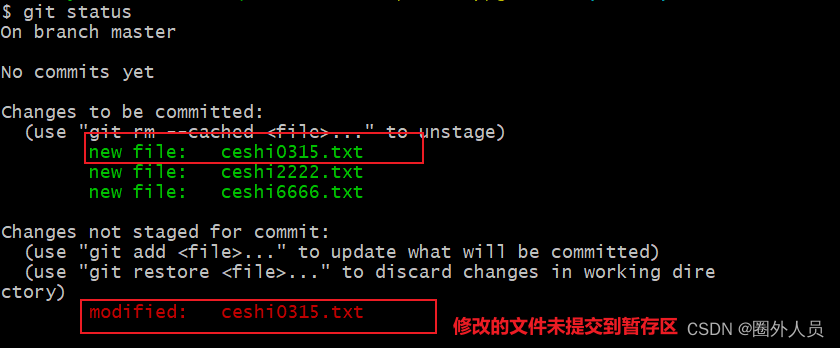 git add ceshi0315.txt 把工作区的文件ceshi0315.txt文件提交到暂存区