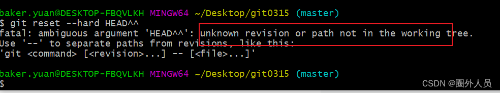 如果回退的版本(上一个版本或上两个版本)不存在,就会报错