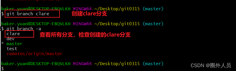 - 创建master分支(默认,第一次提交文件的时候自动生成)
