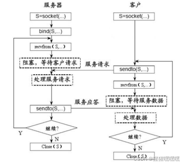 #服务端调用recvfrom()等待接收数据,此时阻塞