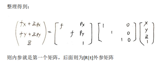 (2)接着,是从相机坐标系转为图像坐标系,这一步是三维点到二维点的转换,包括 K (相机内参)等参数;