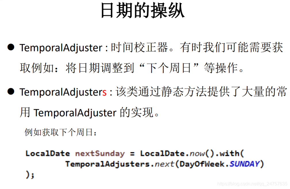 LocalDateTime ldt3 = ldt1.with(TemporalAdjusters.next(DayOfWeek.SUNDAY));