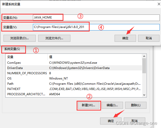 PS:变量值是JDK的安装位置,此处我没有更改安装位置,使用的是默认安装位置,注意变量名为大写,不要有空格