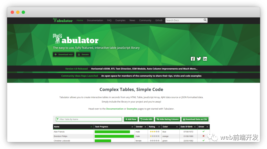 Tabulator 允许您像排序、添加、编辑或删除 HTML 表格一样轻松地创建包含数据的交互式表格。我们可以从 Javascript Array 中获取表的数据,从 AJAX 中获取数据源,或者 JSON 格式。