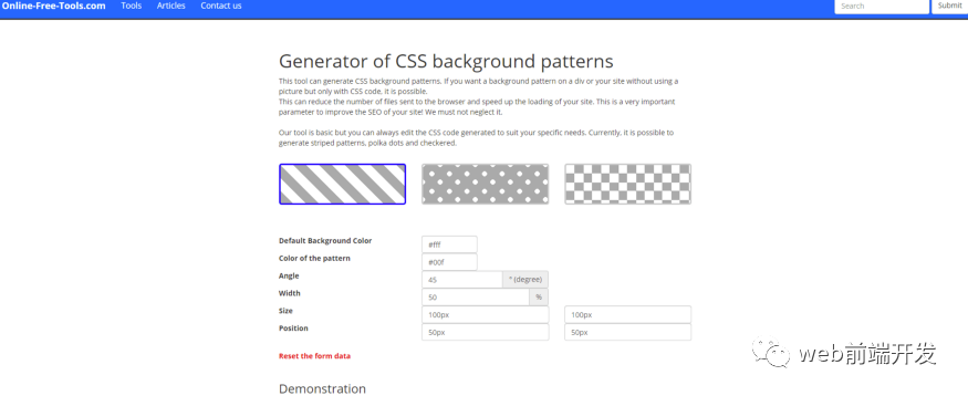 地址:https://online-free-tools.com/en/css_pattern_generator_background