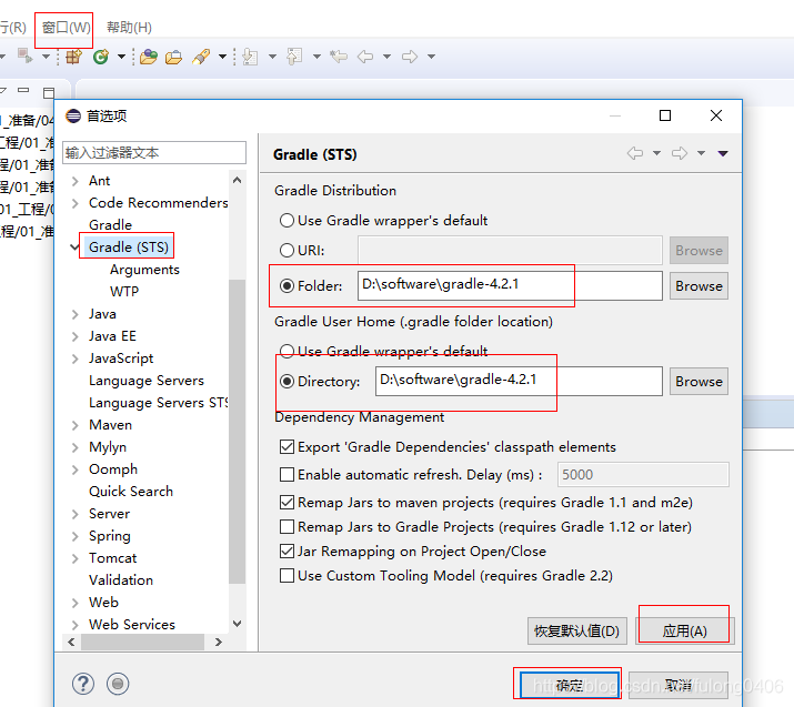 4步:为eclipse配置本地的gradle,在窗口—》首选项—-