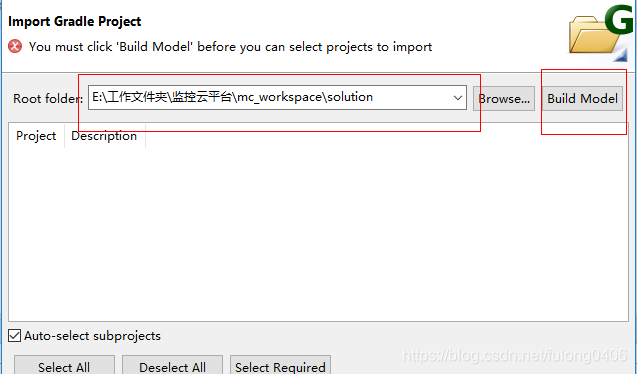 点击build gradle后下面出现了你的工程,然后把工程全部勾选,就完成拉