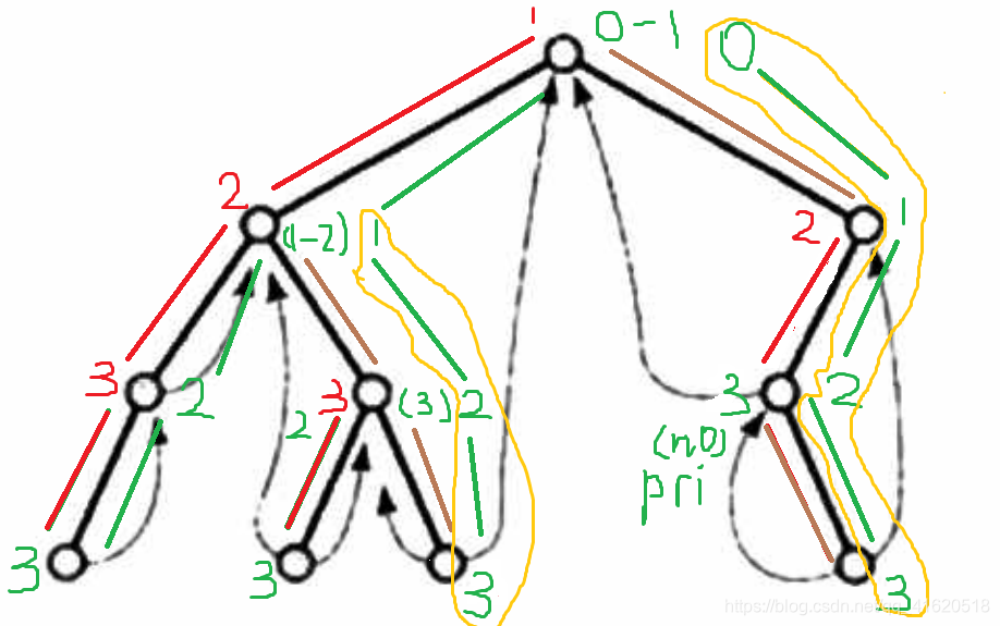 //第二个条件见下图黄色线部分,应用于子树最终所有右子节点的打印