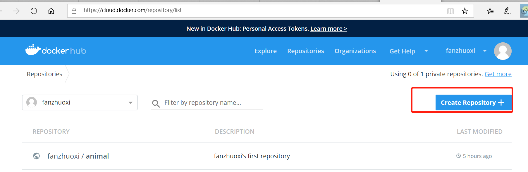 创建后仓库后,这边提过了推送本地镜像到Docker Hub的命令