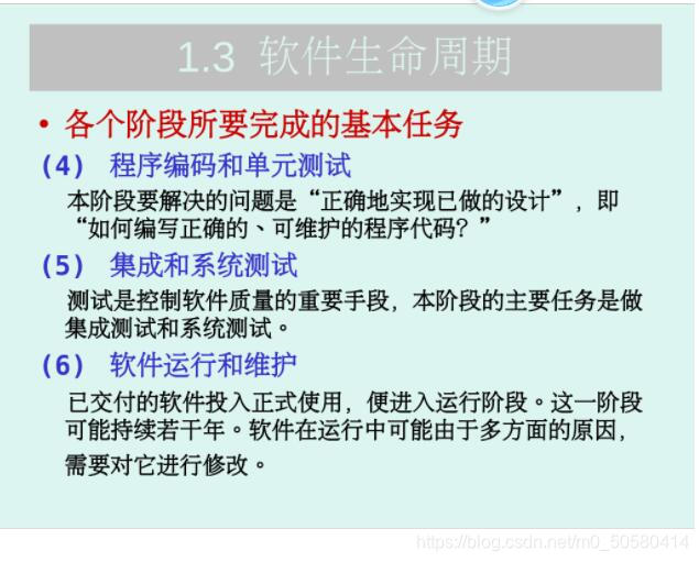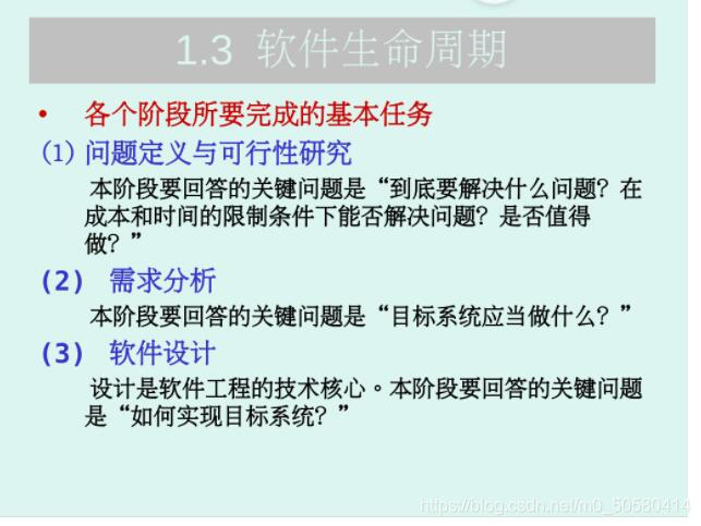软件生命周期由软件定义、软件开发和运行维护3个时期组成,每个时期又可划分为若干个阶段。