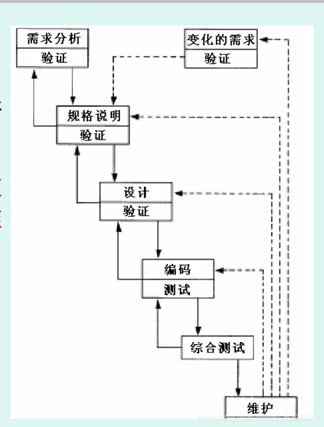 (2)瀑布模型只适用于项目开始时需求已确定的情况。
