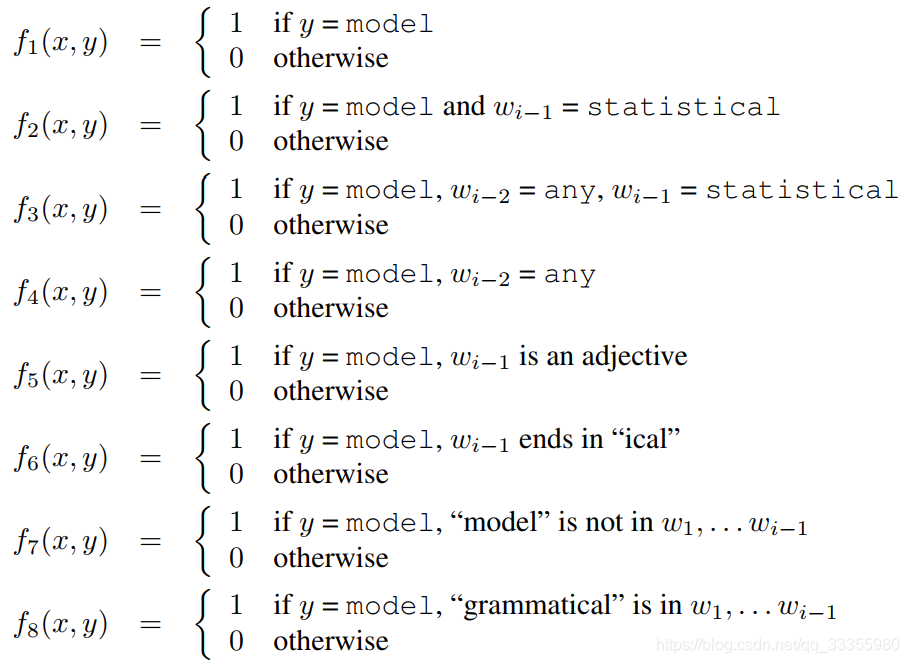 是一组指示函数。在语言模型中,可以是如下的指示函数: