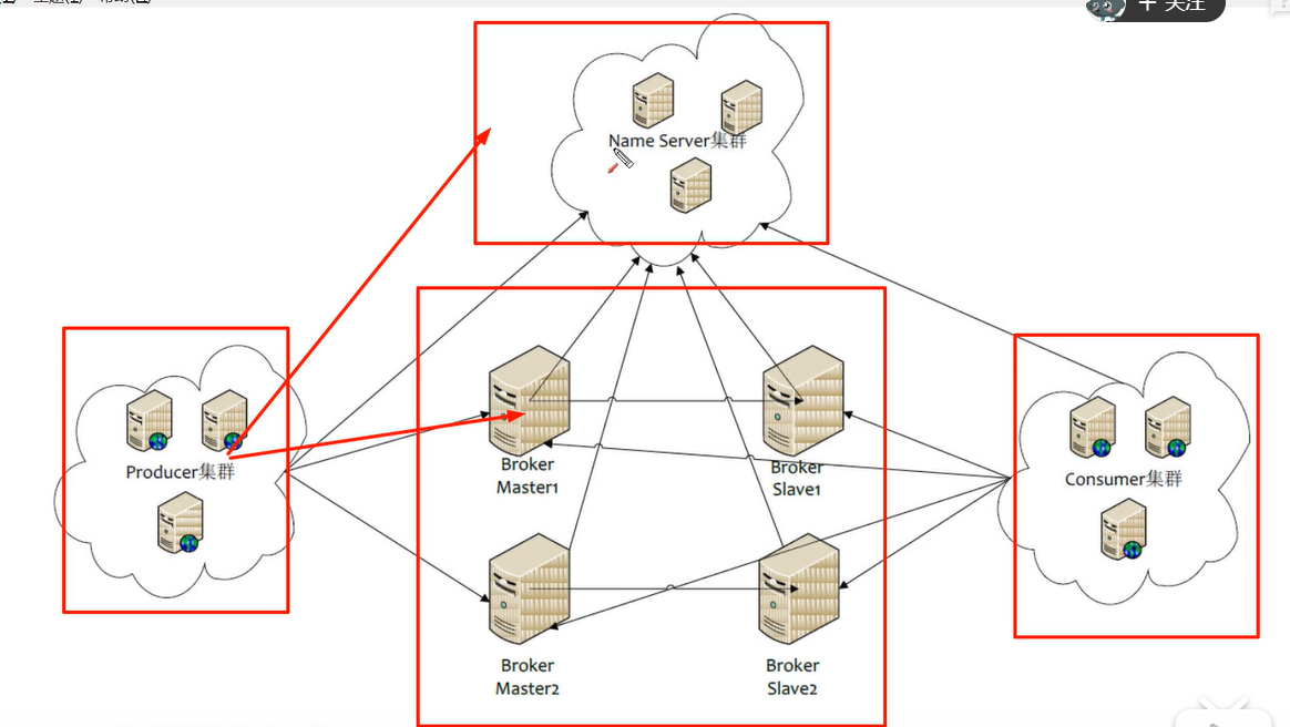 生产消息:首先Producer首先向Name Server询问Broker的地址,然后将消息传递给Broker。