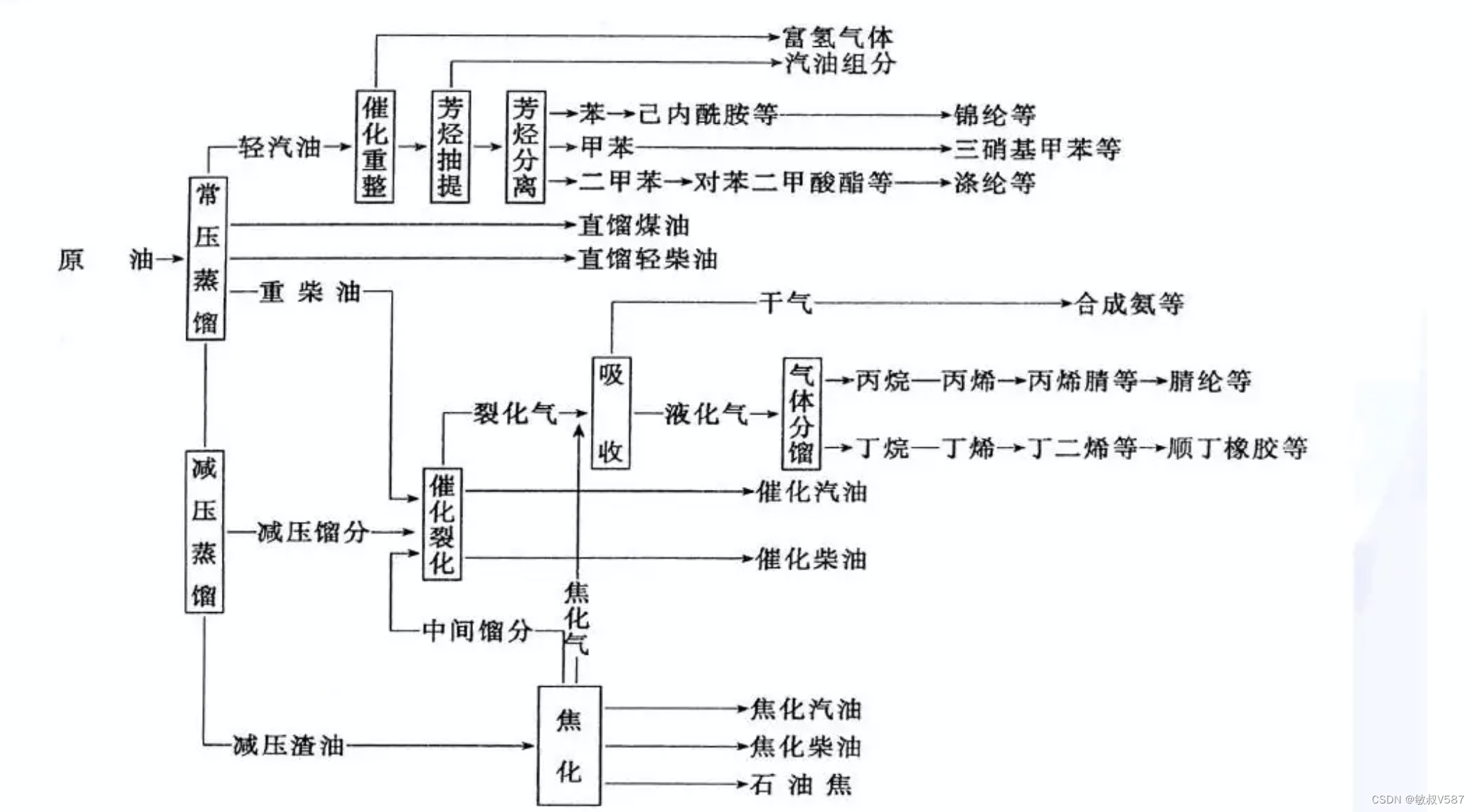 其实里面核心的逻辑就是,原油经过不断提炼,在各个阶段都可以加工出各种产品,