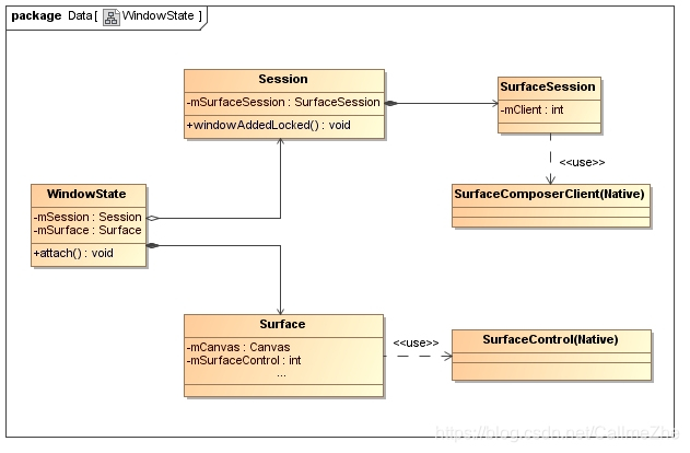 在WindowManagerService服务这一侧,每一个应用程序窗口,即每一个Activity组件,都有一个对应的WindowState对象,这个WindowState对象的成员变量mSurface同样是指向了一个Surface对象,如图3所示: