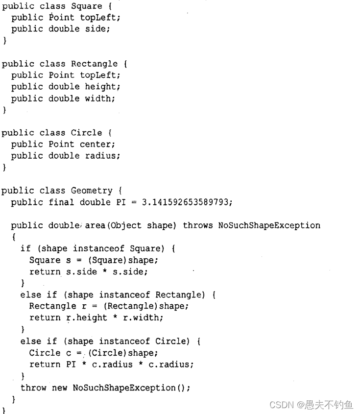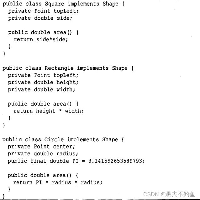 大家可以看出案例1为过程式代码,但并不能因此嘲笑这个写法。因为如果给Geometry类添加一个primeter()方法,那些形状类根本不受影响。另一方面,假如新增加一个图形类,那Geometry类就需要修改。注意这两种情况是对立的。