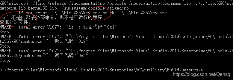 call “D:\Program Files\Microsoft Visual Studio\2019\Enterprise\VC\Tools\MSVC\14.20.27508\bin\Hostx86\x86\nmake”