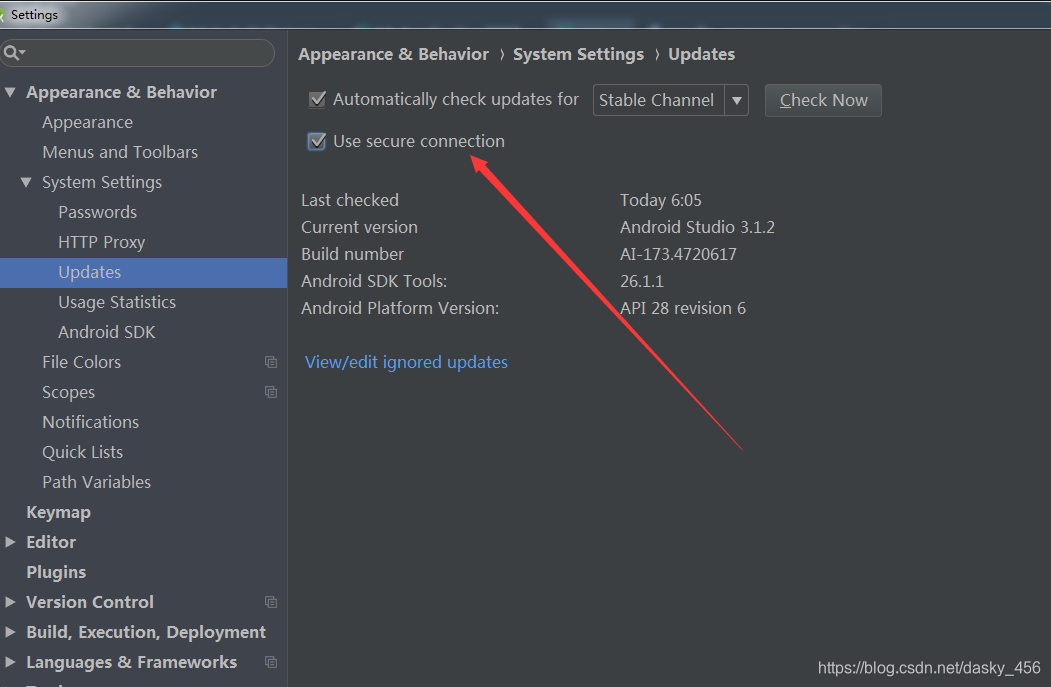 2、还有一个原因,会导致jcenter()访问失败,很多包都下载不下来,可以尝试以下设置试试:把Use secure connection去掉勾选;