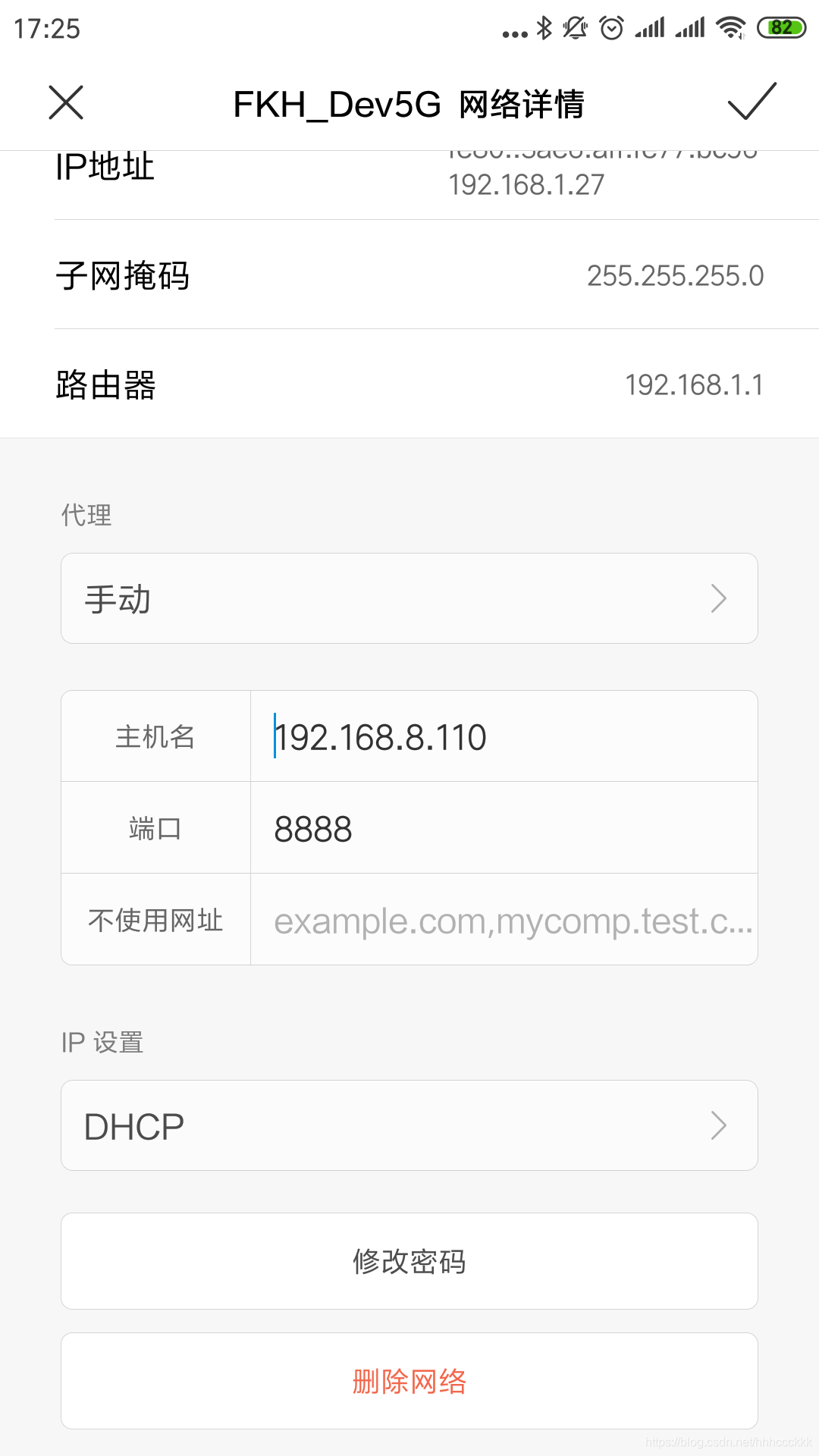 4、设置代理(记住手机跟电脑要在同一个网络,用的同一个路由器)