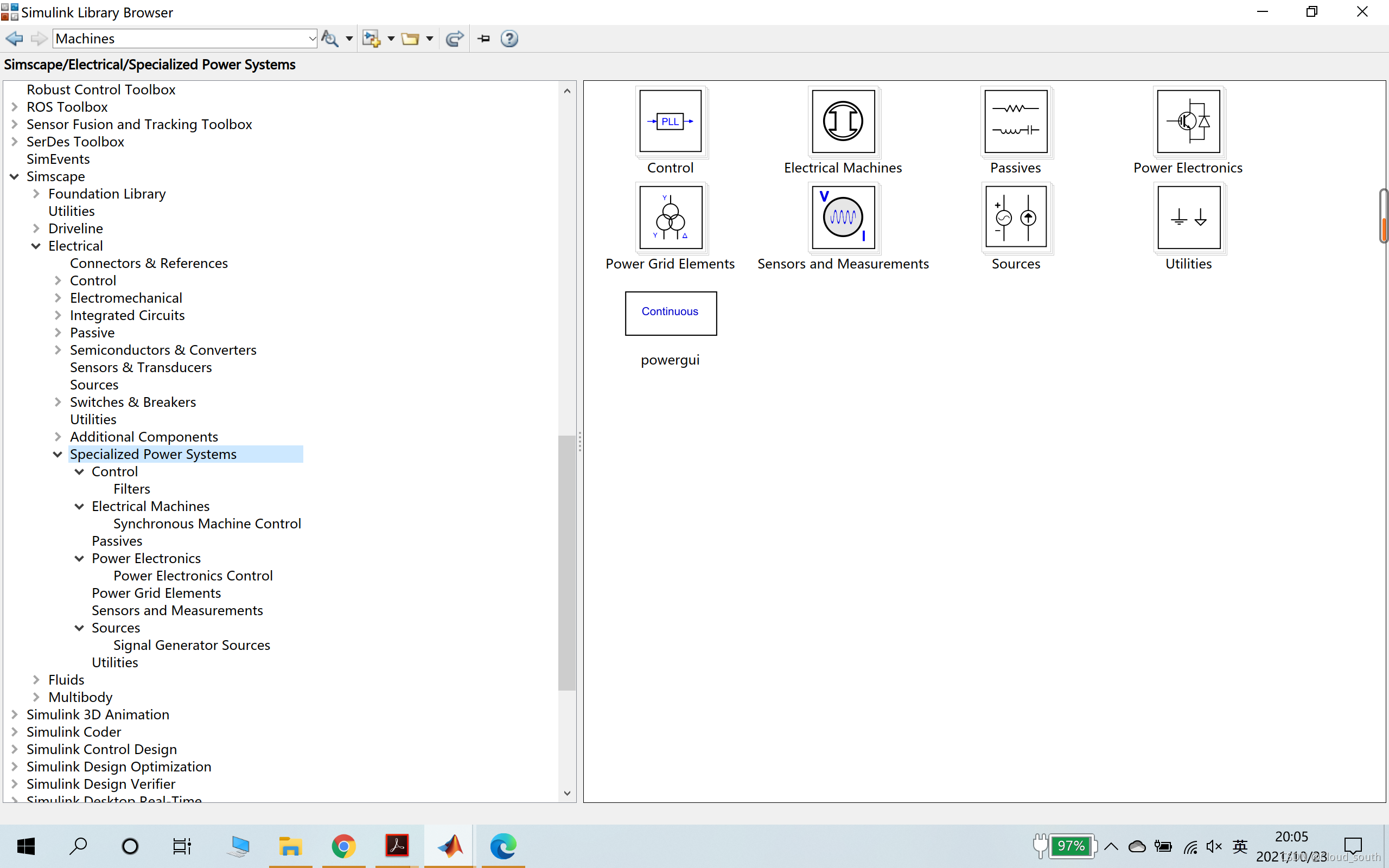 刚开始学习电机控制,在Simulink找了好久找不到SimPowerSystems,于是在模块库浏览器中搜索了电机,这才找到这个工具箱,路径如图,供大家参考(改名字了):