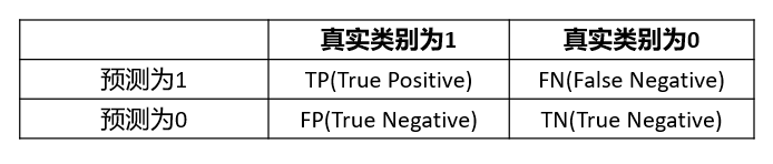 对于二分类问题,TP\FP\FN\TN定义如下: