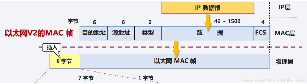 为了达到比特同步,在传输媒体上实际传送的要比 MAC 帧还多 8 个字节
