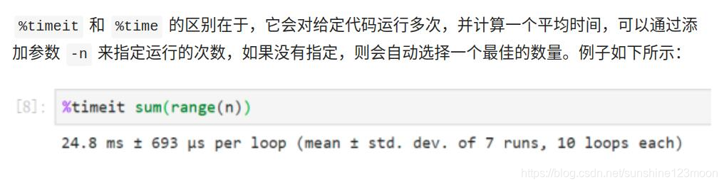 %:计算一行的运行时间(%timeit 重复执行n次 然后计算的是平均运行时间)