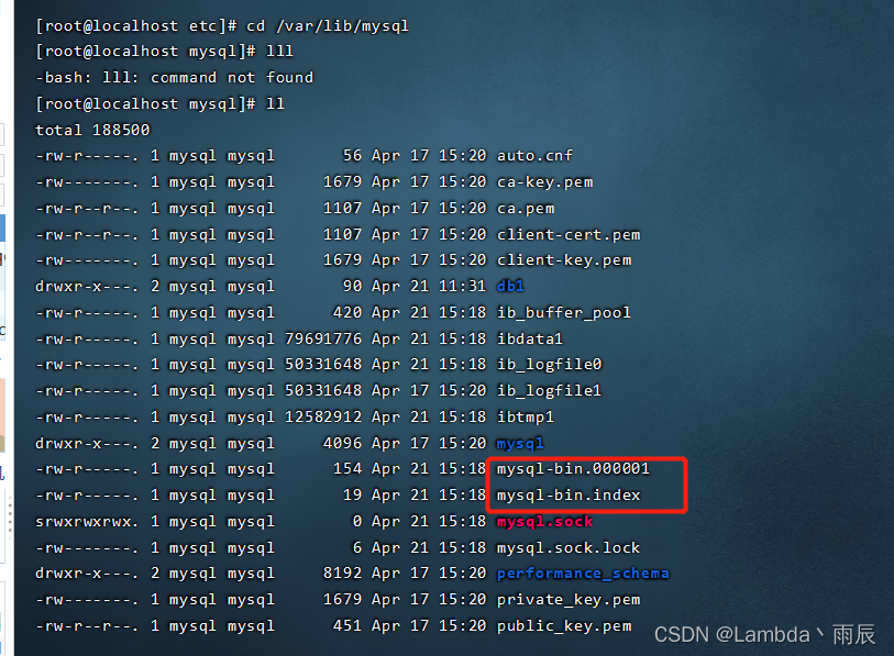 7、再该路径下会生成mysql-bin.000001 mysql-bin.000002这样的文件