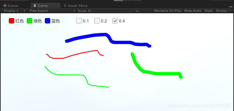 这里我设置了一组单选按钮,通过单选按钮控制线条颜色和粗细。为了方便查看线条,我新建了一个Plane作为背景,根据鼠标按下时的位置,来持续绘制线段