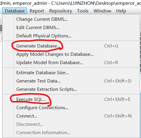 第一步:将oracle数据库中现有的表转换成pdm文件