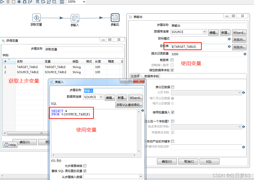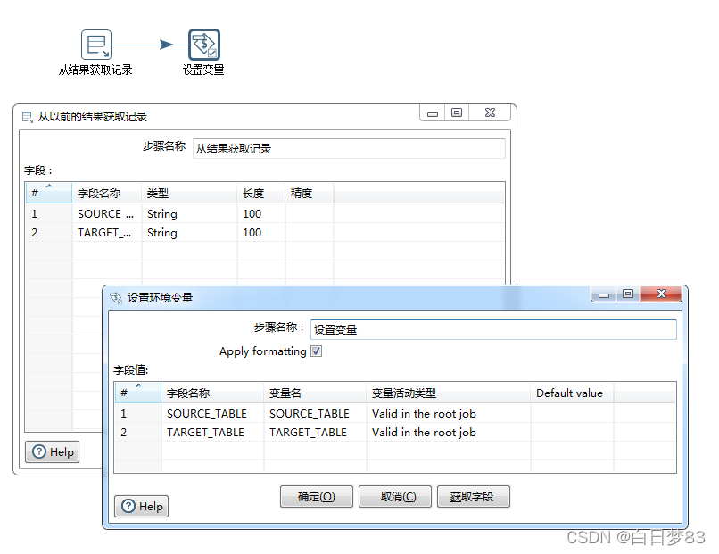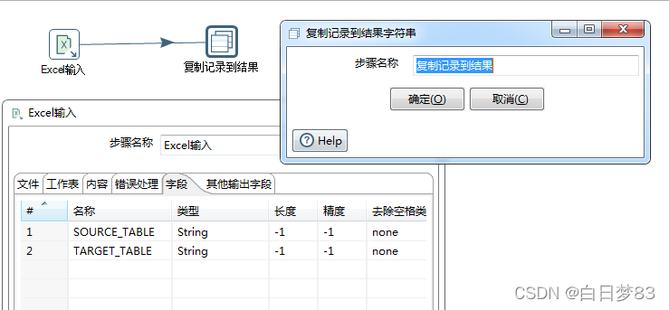 2、从EXCEL获取表名(注意配置源表列名、目标表列名)