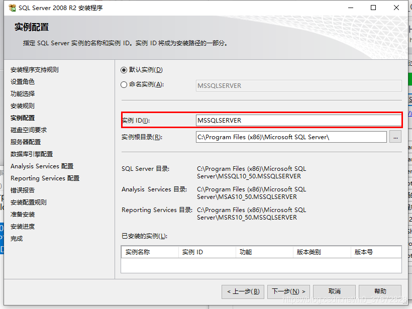 实例名称ID 一般我们都是默认的,如果有很多台服务器的话建议这个ID根据分部情况调整重命名,然后点击下一步