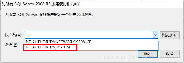 选择 “NT AUTHORITY\SYSTEM”点击 确定,然后点击下一步