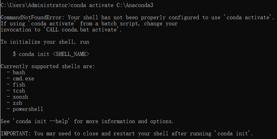CommandNotFoundError: Your shell has not been properly configured to use ‘conda activate’.
