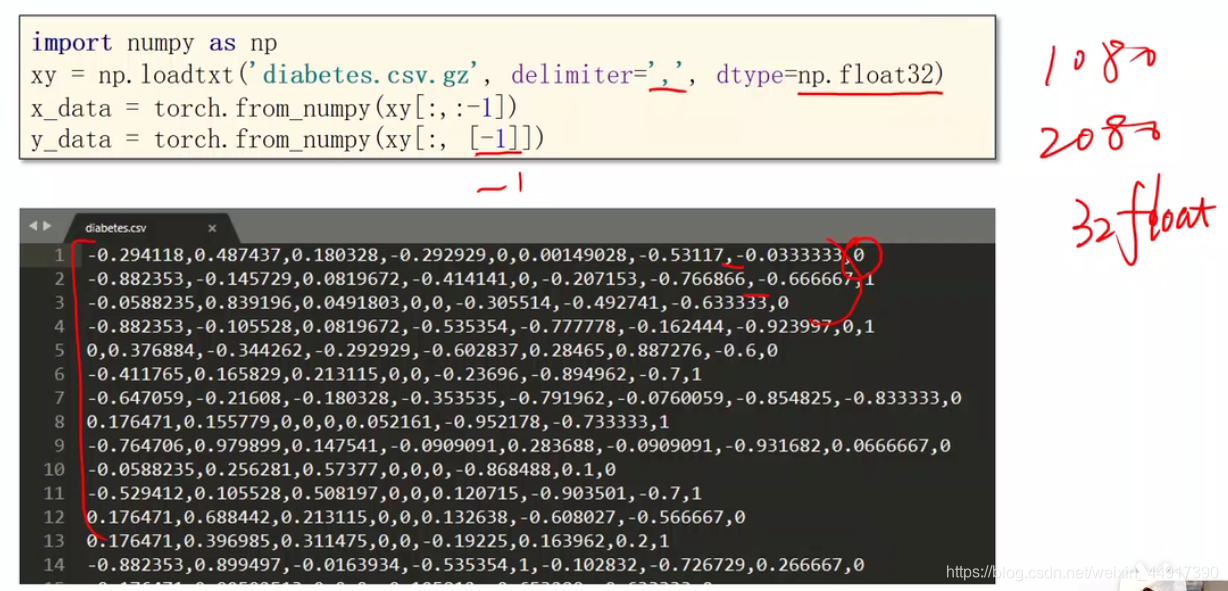 xy = np.loadtxt("E:/AI学习/PyTouch/刘普洪:《PyTorch深度学习实践》完结合集/Code/DataSet/diabetes.csv"