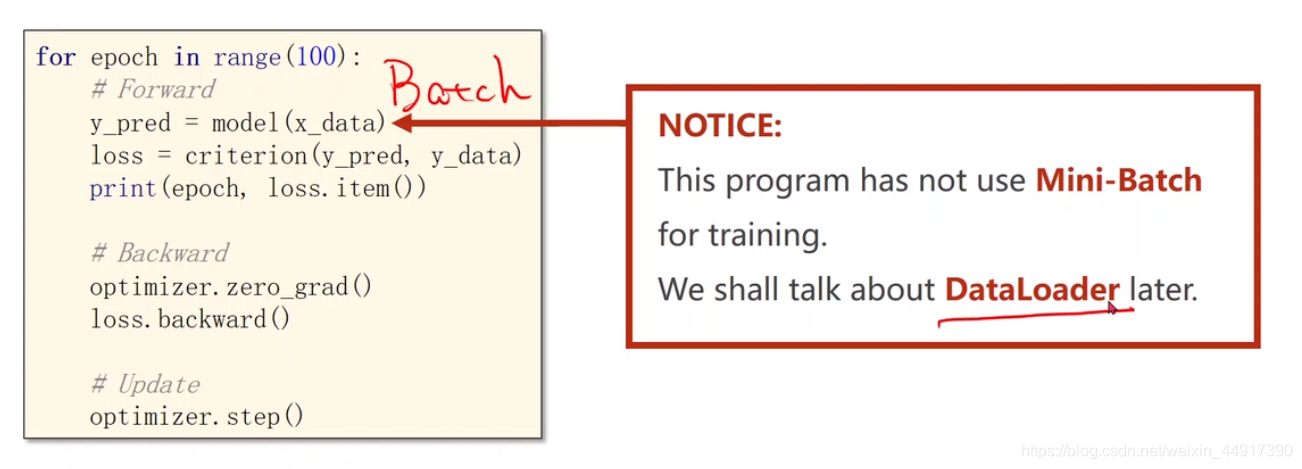 optimzer = torch.optim.SGD(model.parameters(), lr=0.1)
