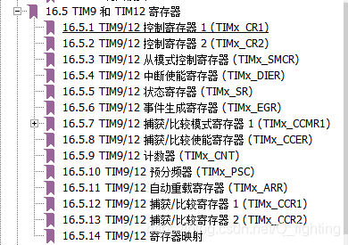 关于通用定时器的寄存器有十几个,关于定时器计数功能的寄存器,之前的文章已经提到过,这里主要说一下PWM波输出需要用到的寄存器。