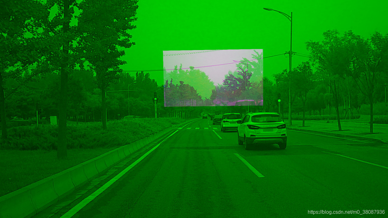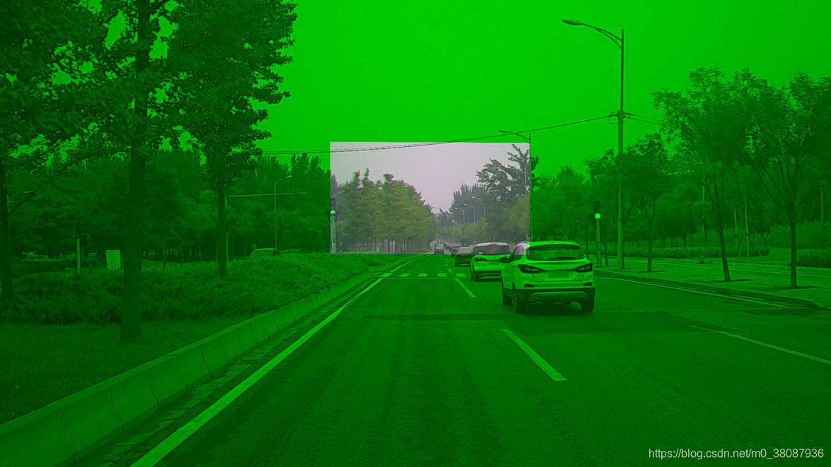 验证方法:在合成图像的融合区域,判断距离汽车50米开外的对齐情况。如果图像完全重合,则表示外参标定结果符合要求。如果出现粉色或者绿色的阴影(位移),则说明外部参数错误。