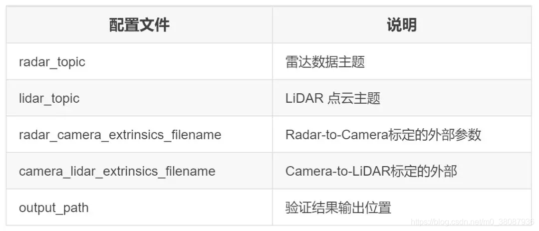 表 5. Camera-to-LiDAR 标定配置文件说明