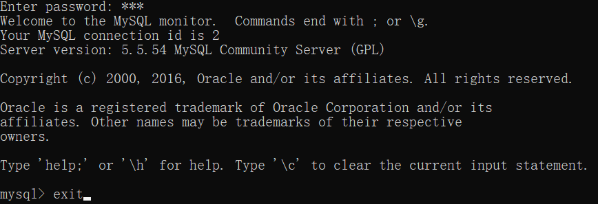 命令行输入:mysql -h localhost -P 3306 -u root -p