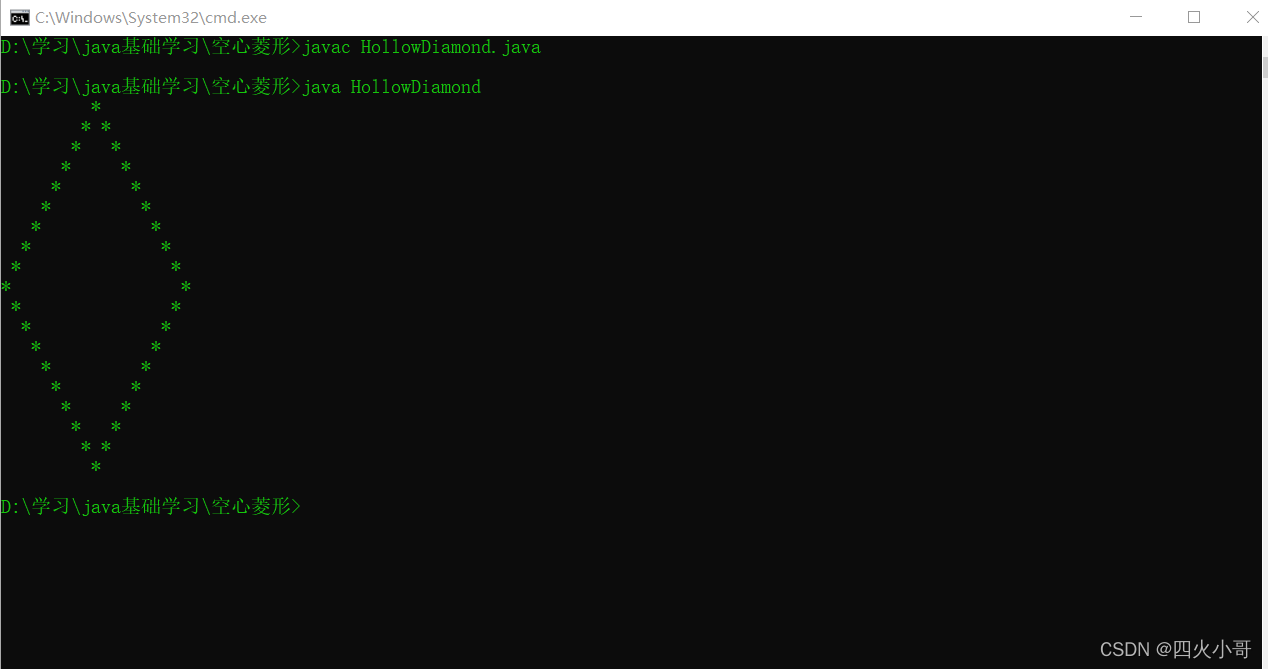 * //第1层 有 1个* 2 * 1 -1 有3=(总层数/2+1-1)个空格